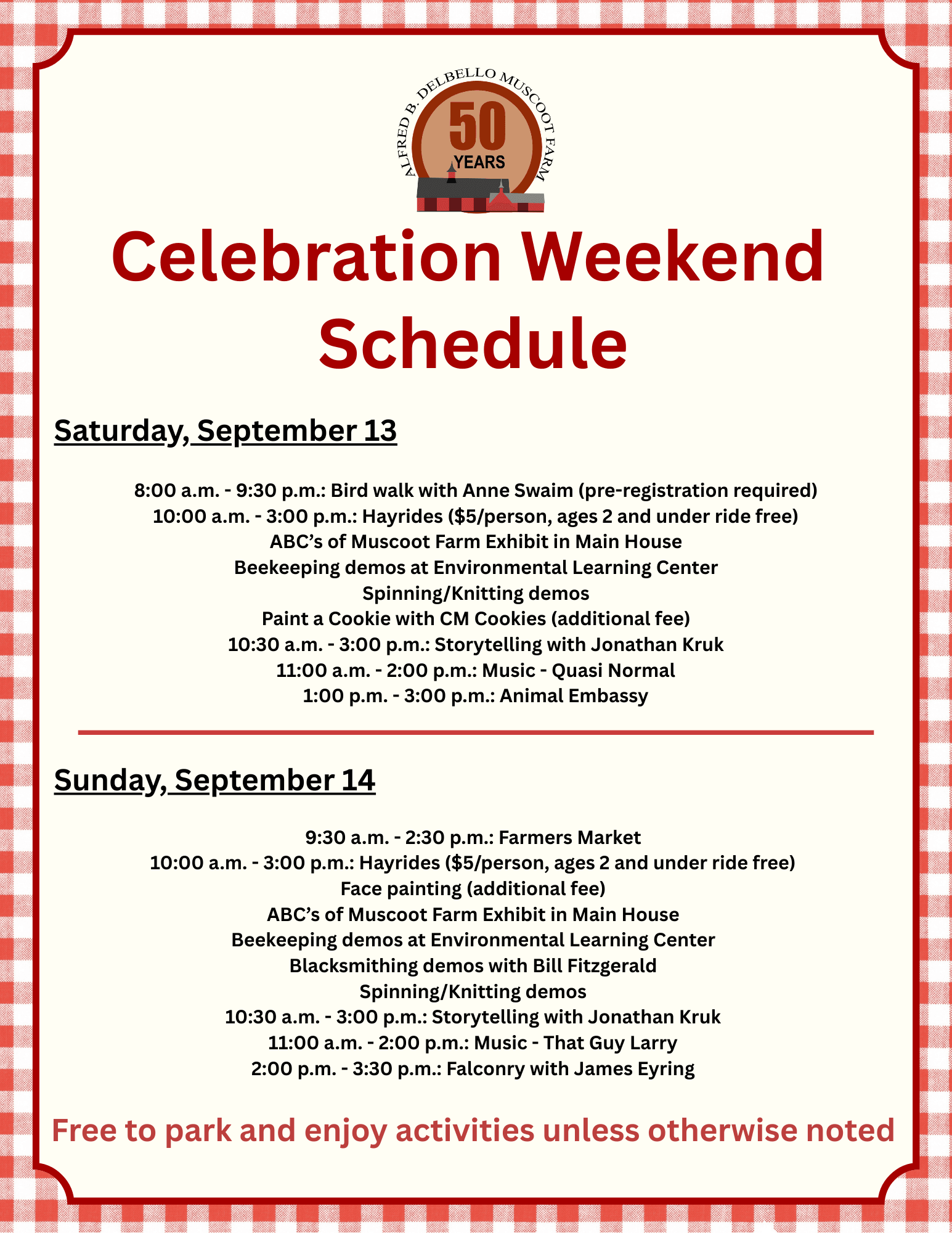 Saturday and Sunday, September 13 and 14, 10:00 am to 3:00 pm: 50th Celebration (all ages)